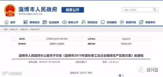 近日,山东省淄博市政府办公室印发《淄博市2019年夏秋季工业企业错峰生产实施方案》的通知,宣布从7-9月的夏秋季工业企业错峰生产,最高限产30%。不论是早前响水化工16家化工企业被迫停工,还是如今全国各地整顿排查,大量化工厂停产、限产、限运,显然已经引起整个化工市场的震荡。