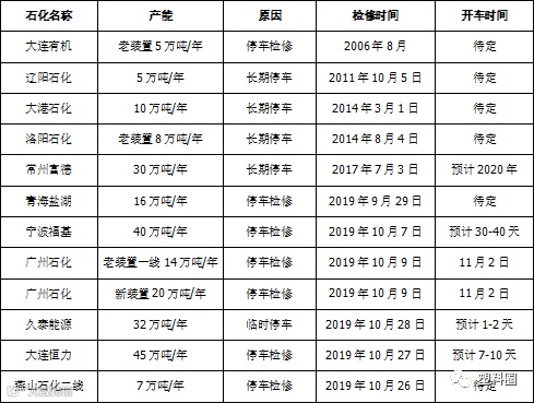 表3 PP石化停车检修统计