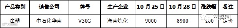 表2 石化出厂价格调整一览表(单位: