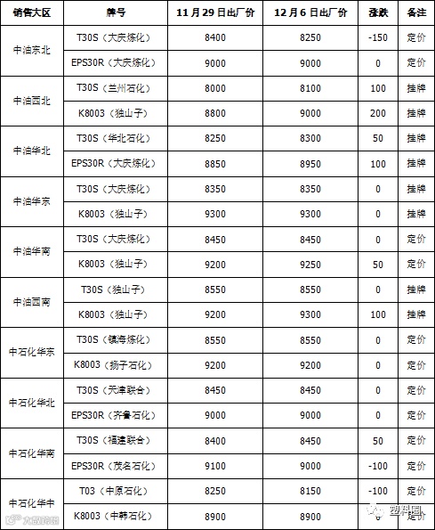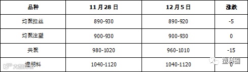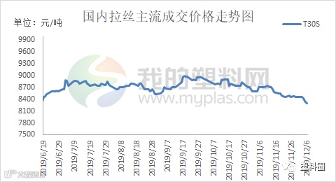 本周国内PP报价走势分化,截止12月6日,国内拉丝主流成交价格在8150-8400元/吨不等,价格较上一周下跌50-100元/吨左右;低熔共聚主流价格在8770-9300元/吨不等,价格较上周上涨100-200元/吨左右。
