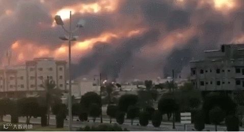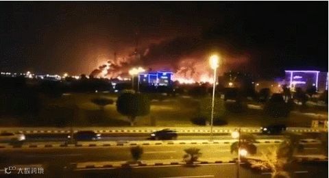 网络上的视频显示,布贾克的阿布盖格(Abqaiq)石油加工设施燃起熊熊火焰,现场火光冲天,地平线上升起了浓烟,据称背景中还传来阵阵枪火声。