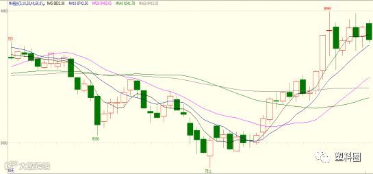 盘面情况:PP1909合约开盘8905元/吨,最低8760元/吨,最高8935元/吨,收于8781元/吨,跌11元/吨,跌幅0.13%。成交量减少至1355000手,持仓减少26522手至546056手。技术面来看, PP1909高开震荡走低,减仓收阴线,盘面资金流出0.72亿元。MACD(12,26,9)指标中红色能量柱变短,DIFF与DEA均处于0轴上方,能量喇叭口逐渐收敛。KDJ指标在徘徊区开口有放大趋势。压力位9000附近,支撑位8500附近。