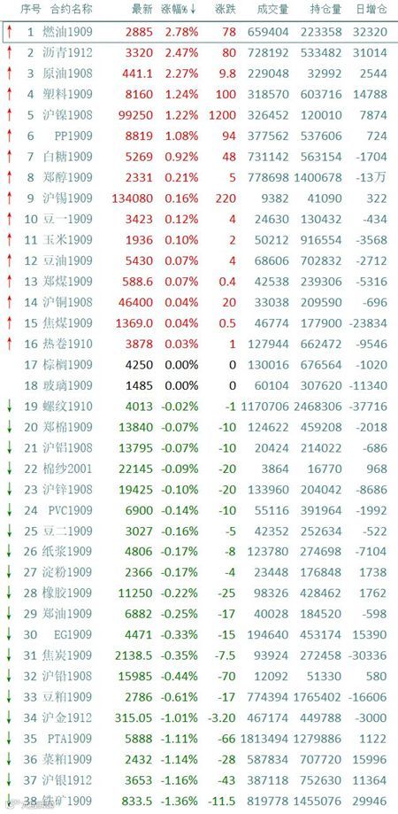 2019.7.5-2019.7.8日夜盘涨跌一览