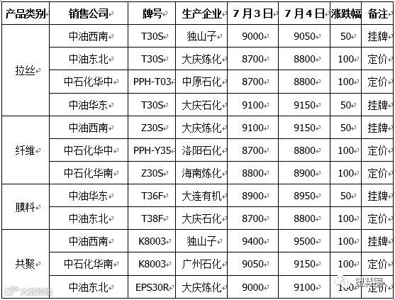 表2 石化出厂价格调整一览表(单位:元/吨)