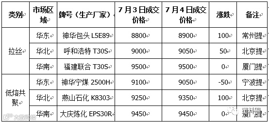 今日国内PP市场价格整理为主。价格方面,拉丝主流价格上涨50-100元/吨左右;共聚价格稳定为主,部分小幅涨跌50-100元/吨左右;国内拉丝主流价格在8800-9100元/吨不等,低熔共聚主流价格在9100-9450元/吨不等。早间PP期货高开震荡,加上部分石化出厂价格继续上调,商家积极出货,市场报价小幅上涨。午盘起期货跳水大幅下跌,业者后市担忧情绪升温。持货商让利低出情绪抬头,华东地区部分价格回落50-80元/吨左右。买盘谨慎观望为主,场内交投氛围转淡。但由于市场部分牌号货源紧俏且石化出厂价格坚挺,多数贸易商报价回落幅度有限。对于后市,业者心态不一,持货商锁利减仓与观望待市均有。