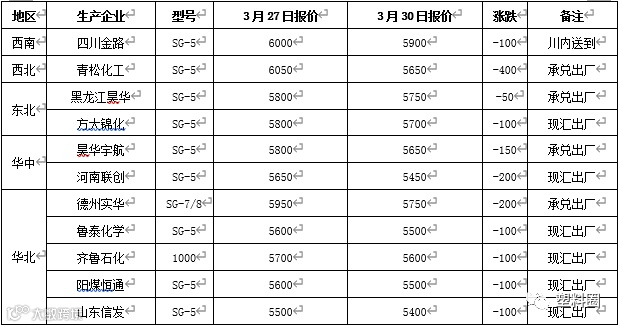 表3 我的塑料网(www.myplas.com)PVC企业价格(单位:元/吨)