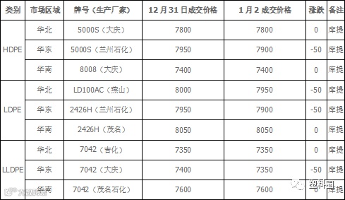 表1 PE市场成交价格(单位:元/吨)