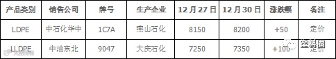 表2 石化出厂价格调整一览表(单位:元/吨)