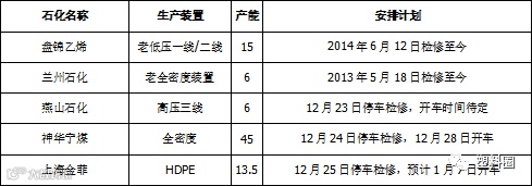 表3 PE石化停车检修统计