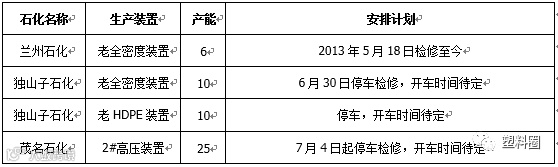 表3 PE石化停车检修统计2.3石化装置运行情况