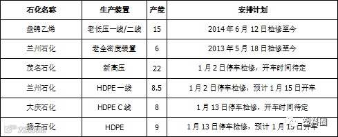 表3 PE石化停车检修统计
