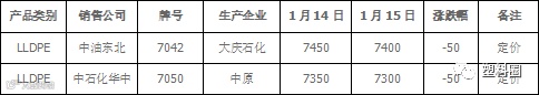 表2 石化出厂价格调整一览表(单位:元/吨)