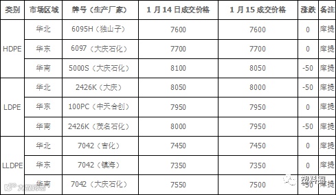 预计明天国内PE市场价格偏弱整理。国内LLDPE主流市场价格在7200-8100元/吨;LDPE主流市场价格7400-8700元/吨;HDPE膜主流市场价格在7500-7700元/吨。