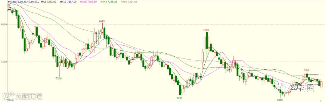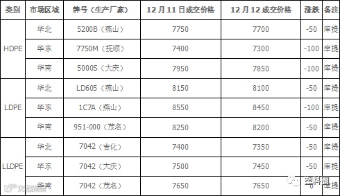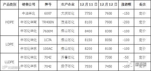 预计明天国内PE市场价格小幅走跌50-100元/吨。国内LLDPE主流市场价格在7200-8000元/吨;LDPE主流市场价格7700-8700元/吨;HDPE膜主流市场价格在7500-8100元/吨。