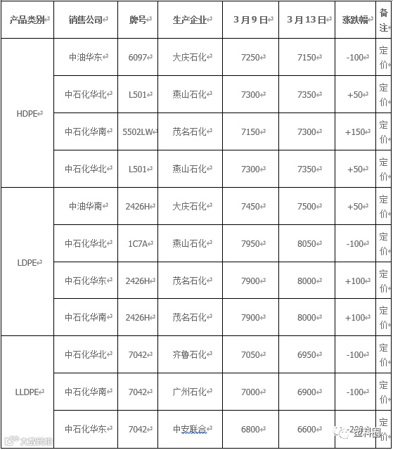 吨。周初国际原油大幅走跌、线性期货跌停,对业者心态打压明显,市场价格部分走跌。周二期货小幅反弹,石化出厂价格部分上调,给市场带来一定支撑。周三起期货震荡走跌,商家心态偏空,报盘多数下移。下游方面,工厂拿货多谨慎,除刚需拿货外多维持观望态度。周内市场整体交投气氛一般。