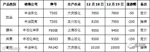 表2 石化出厂价格调整一览表(单位:元/吨)