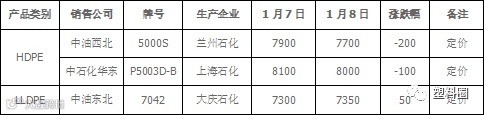 表2 石化出厂价格调整一览表(单位:元/吨)