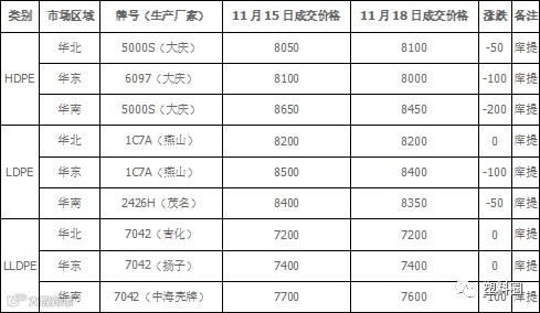 表1 PE市场成交价格(单位: