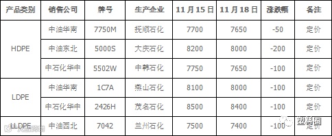 表2 石化出厂价格调整一览表(单位: