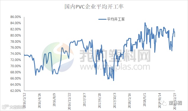国内PVC行业开工率在79.45%附近。主要受内蒙亿利和甘肃银光PVC装置恢复影响,PVC行业开工率变动有限。