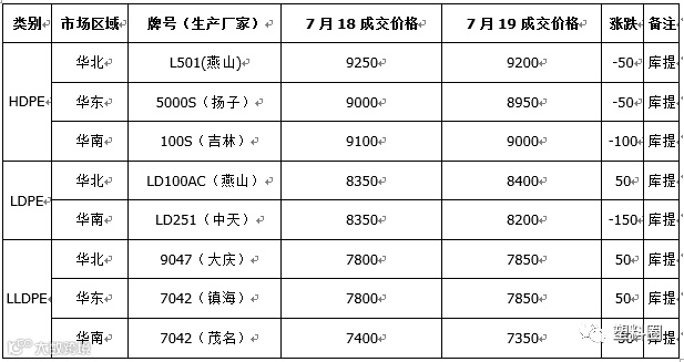 今日国内PE市场涨跌互现,价格涨跌幅度在50-150元/吨不等。石化部分下调PE出厂价格,下调幅度在100-250元/吨不等,市场成本支撑减弱。期货高开震荡下行,一定程度打压业者入市积极性。贸易商随行就市报盘出货,部分业者入市采购低价货源,低价成交有所放量。但环保督查力度不减,下游工厂除刚需拿货外多观望为主,市场交投气氛一般。当前,国内LLDPE主流市场价格在7750-8200元/吨;LDPE主流市场价格在8200-8950元/吨;HDPE膜主流市场价格在8450-8800元/吨。