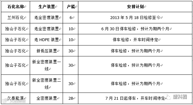 表3 PE石化停车检修统计2.3石化装置运行情况