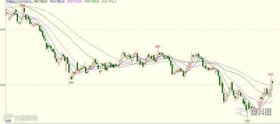 盘面情况:今日连塑1909合约开盘报8060元/吨,最高8095元/吨,最低7920元/吨,收于8035元/吨,涨95元/吨,涨幅1.20%,成交量报1013218手,持仓量减少31416手,报628926手。技术上,LLDPE1909合约高开后小幅震荡收涨,收长下影小阴线,盘面资金流出6806万,MACD指标中能量柱红柱变化不大,DIFF穿过0轴线后与DEA延续上行。KDJ指标小幅回落。下方测试7900附近支撑,上方关注8150附近压力,短期期价或维持在7900-8150区间震荡,建议区间交易。