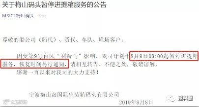 已开始做防台准备,船公司和码头相继发布通知停止放单和提箱;宁波港和上海港可能随时封港!