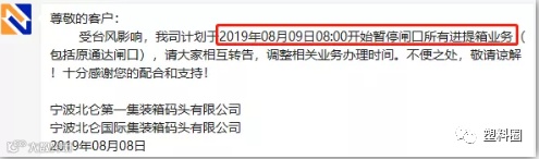 导读:8日傍晚台风“利奇马”增强到17级、其大概率在浙江中北部登陆;随着增强继续北上将影响上海、江苏、山东和辽宁;船公司、码头相继发布停止放单、提箱!宁波港和上海港随时可能封港!做塑料贸易的朋友们注意了!