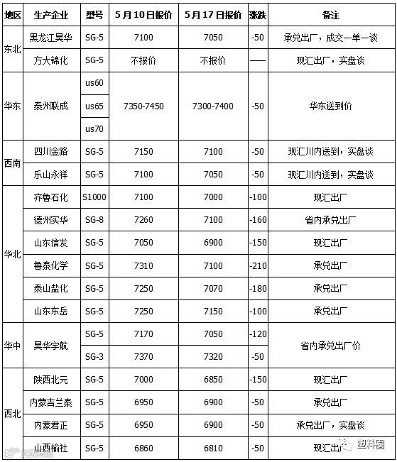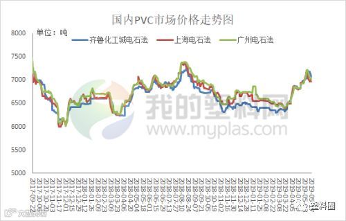 本周国内PVC市场气氛平静,周初价格连续下跌,周中以后稍有好转,累计跌幅在50-150元/吨左右。周初V1909期货即开启下跌模式,日间盘出现明显空头趋势,导致各地区企业多调低出厂报盘,现货市场价格亦继续回落,让利促成交现象屡见不鲜。周三期货开始反弹,企业部分地区有补跌现象,亦有部分企业调高价格,现货市场商家部分有试探高报,华东地区市场跟随期货上涨,随行就市出货成为主流节奏。周五期货下行,部分企业出厂价格有下调,现货市场商家报价出现走低,其中华东地区价格下跌较为明显。下游制品企业逢低刚需补库为主,氛围略显清冷。截止到周五,国内电石法5型料主流报价在6880-7110元/吨;乙烯料主要市场价格在7050-7300元/吨,高型号价格高100-150元/吨。