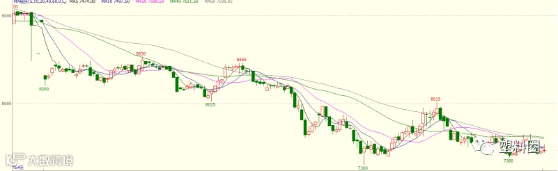 盘面情况:今日连塑2001合约开盘报7460元/吨,最高7530元/吨,最低7440元/吨,收于7465元/吨,涨20元/吨,涨幅在0.27%,成交量报474104手,持仓量减少3790手,报704446手。技术上,LLDPE2001合约高开后小幅震荡收涨,收长上影小阳线,盘面资金流出530万,MACD指标中能量柱红柱继续缩短,接近0轴线附近,DIFF与DEA线在0轴线下方继续整理,KDJ指标小幅向下延伸。从均线上来看,下方测试7380附近支撑,上方关注7600附近压力,短期期价或维持在7380-7600区间震荡,建议区间交易。