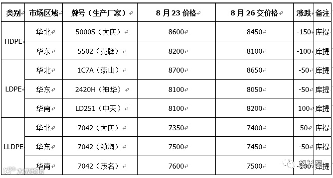 导读:今日国内PE市场价格除个别货少挺价外,部分下跌50-150元/吨。石化方面部分出