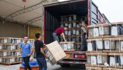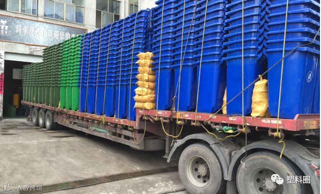 各种型号的垃圾桶堆放得满满当当,前来运货的车辆排成队伍,工人们正忙着将打包好的垃圾桶装载上车。昨天一大早,在浙江黄岩的中野塑业厂区门口,就是这幅景象。