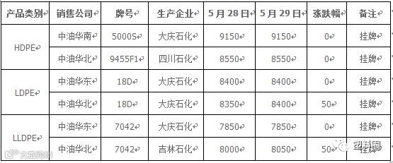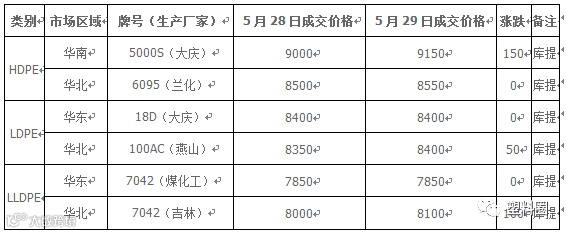 今日国内PE市场价格部分小涨,华北及华东部分线性和高压涨50-100元/吨,低压个别膜料涨50元/吨,个别管材涨100元/吨;华南部分线性和个别高压涨50元/吨,低压部分注塑和拉丝涨50元/吨,部分膜料涨50-100元/吨。早间线性期货高开震荡,部分石化上调出厂价,提振场内交投信心,贸易商试探跟涨出货,下游坚持刚需,实盘侧重商谈。5月29日国内神华系列PE竞拍总量963.86吨(较上一交易日减少162.675),成交率在93.36%,(较上一交易日↑9.50%),今日溢价幅度在30-190元/吨。当前国内LLDPE主流市场价格在7880-8100元/吨,LDPE主流市场价格在8300-9000元/吨,HDPE膜主流市场价格在8570-9050元/吨。