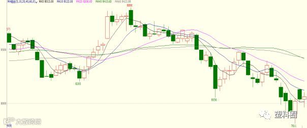 盘面情况:PP1909合约开盘8038元/吨,最低7963最高8100吨,收于8062元/吨,跌1元/吨,跌幅0.01%。成交量增加至854284手,持仓量减少6846手至655340手。技术面来看,PP1909合约低开震荡整理收小阳线,盘面资金流出0.1亿元。MACD(12,26,9) 指标中绿柱变短,DIFF与DEA处于0轴下方,能量喇叭口有收敛趋势,价格下行能降低。KDJ指标在徘徊区形成金叉后继续向上发散,短线下行压力减缓。压力位8400,支撑位8000。