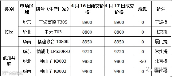 今日国内PP市场价格多数走低。市场主流价格下调50元/吨左右,国内拉丝主流价格在8800-8900元/吨不等,低熔共聚主流价格在9600-9900元/吨不等。今日PP期货弱势整理压制业者信心,加上石化出厂价格逐渐下调,场内货源成本支撑减弱,商家走货积极性增加,市场低价货源增多。受买涨不买跌心态影响,下游企业采购较为谨慎,市场成交量没有明显改变。但目前下游企业前期备货基本消化完毕,市场刚性需求仍在,低价货源成交尚可,但支撑有限。