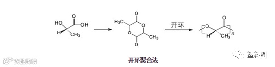二步法:乳酸先脱水生成低聚物,然后解聚生成丙交酯,再开环聚合制得聚乳酸。