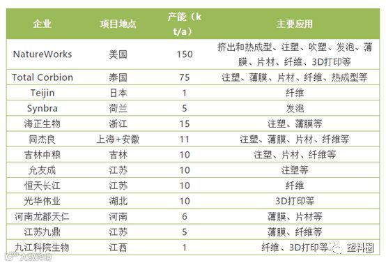 企业项目地点产能(kt/a)主要应用NatureWorks美国150挤出和热成型、注塑、吹塑、发泡、薄膜、片材、纤维、3D打印等Total Corbion泰国75注塑、薄膜、片材、纤维、热成型等Teijin日本1纤维Synbra荷兰5发泡海正生物浙江15注塑、薄膜等同杰良上海+安徽11注塑、薄膜、片材、纤维等吉林中粮吉林10注塑、片材、纤维等允友成江苏10注塑等恒天长江江苏10纤维光华伟业湖北103D打印等河南龙都天仁河南6薄膜、片材等江苏九鼎江苏5薄膜、纤维等九江科院生物江西1纤维、3D打印等。