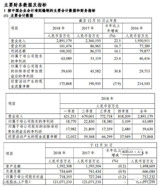 按照中国企业会计准则计算的主要财务数据及指标(来源:中石化官网)