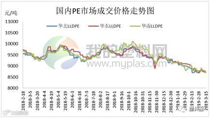 本周聚乙烯市场价格震荡走软。周初期货L1905高开震荡走低,之后进入下行区间,周五跌至周内低点8490元/吨。石化库存周内呈下行走势,石化各销售分公司多数下调出厂价格,成本面支撑走软,业者报盘多数跟跌下行。随着周内期货及石化双双下行影响,市场价格下行明显,货源成交表现一般。下游企业方面来看,目前正处于地膜生产季节,下游地膜方面需求继续跟进,厂家订单积累较多,需求有所好转,但因期货方面表现弱势,下游企业周内备货意向不足,刚需买入为主。因此,社会库存高位,在周内石化下调影响下,成交周内表现平平。由此看来,市场信心弱势难振现状之下,预期短期市场或继续维持震荡走势。