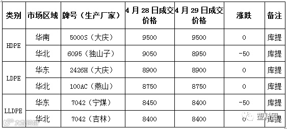 今日PE市场成交价格(单位:元/吨)