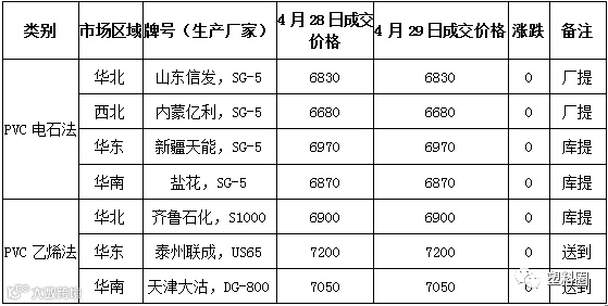 今日PVC市场成交价格(单位:元/吨)