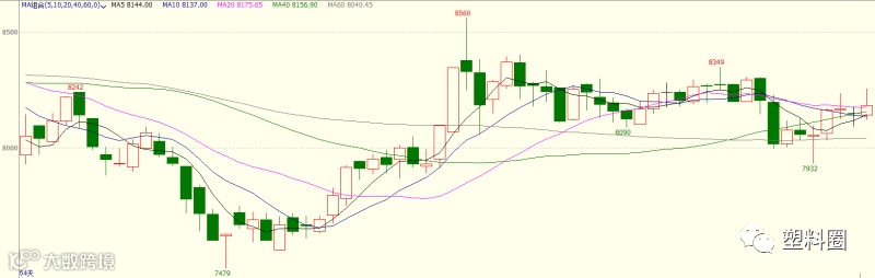 今日国内PP市场小幅上涨,价格方面,拉丝主流价格小幅上涨20-50元/吨左右;部分地区共聚价格小幅上涨50元/吨左右;国内拉丝主流价格在8550-8850元/吨不等,低熔共聚主流价格在8600-9200元/吨不等。今日PP期货震荡上涨,提振业者心态。同时PP装置处于检修旺季,场内部分货源供应并不宽松,对市场价格有一定支撑,多数贸易商小幅高报出货。终端下游逢低适量采购,实盘商谈为主,场内交投好于昨日。