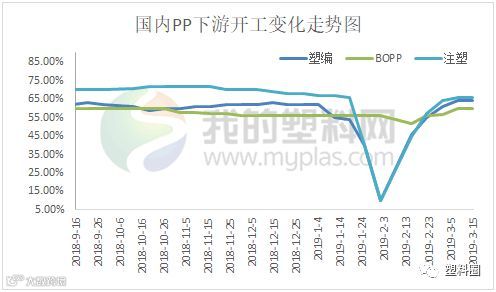对于聚丙烯的下游开工来看,短线仍旧不是特别乐观。据了解,目前相对较大的膜厂开工负荷基本可在80%-90%,但中小企业多数开工不足,多数负荷在60%附近;塑编行业受约束条件较多:包括环保政策、需求不足、成品库存高以及利润压缩等原因,多数开工较低,普遍在35%-55%。且多数下游业者表现今年来自终端的订单减少,整体开工率较去年相比是下降的状态。
