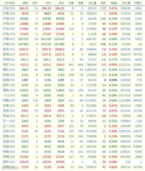 2019.3.13-2019.3.14日夜盘涨跌一览