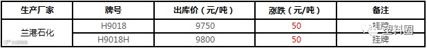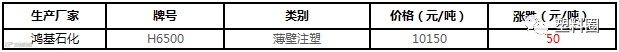 鸿基石化PP出厂价格上调50元/吨