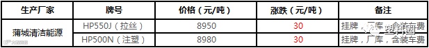 蒲城清洁能源PP价格上涨30元/吨