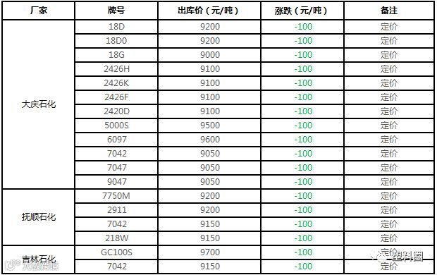 中油东北PE价格下调100元/吨!!!