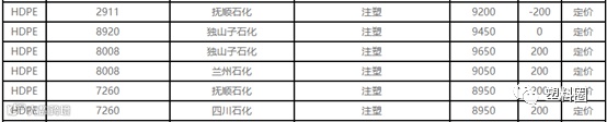 中油华北HDPE价格个别下调200元/吨,多数上调200元/吨