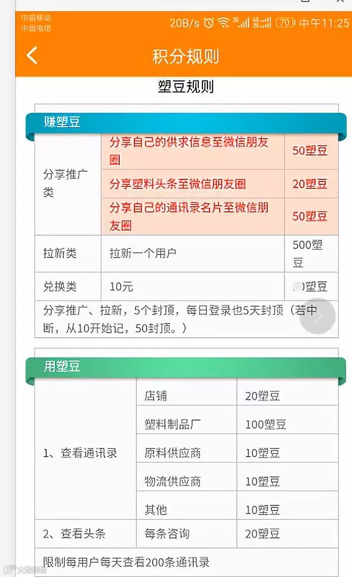 注意:拉新用户需经过我的塑料网客服审核通过后即可获得相应数量的塑豆。